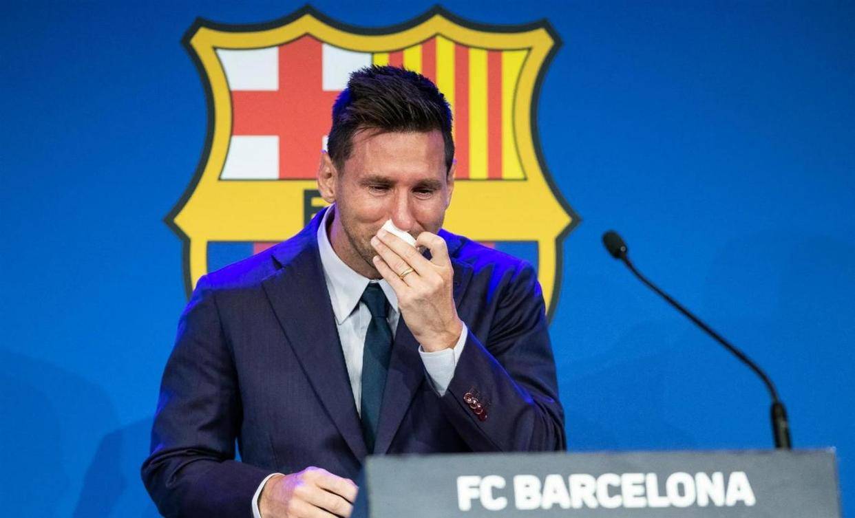 2021年8月8日,诺坎普新闻发布厅。 梅西穿着简单的白色T恤,坐在话筒前。 他的眼睛红肿,声音哽咽。 他说自己从未想过会以这种方式离开巴萨,他愿意继续降薪,甚至考虑过免费为俱乐部踢球。 但一切都太晚了。 拉波尔塔在另一场发布会上解释,如果签下梅西,需要抵押俱乐部未来50年的转播权,这会对巴萨造成“灾难性影响”。