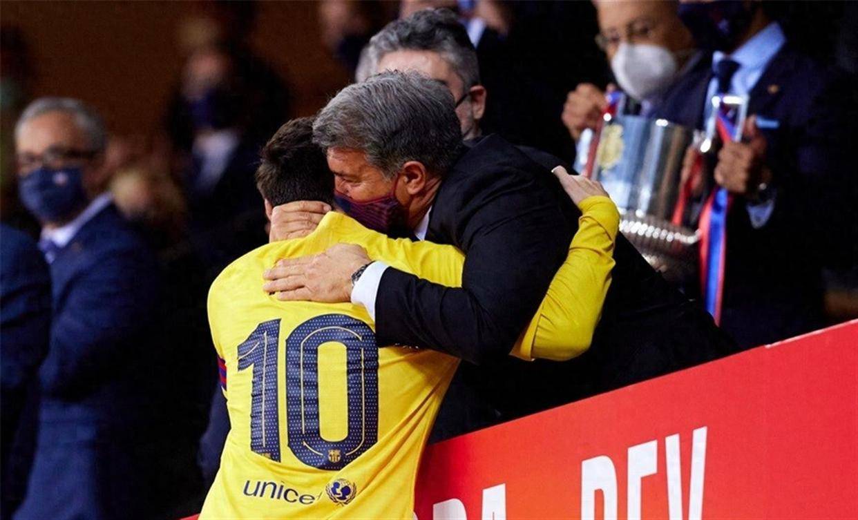 梅西在巴萨效力了21年。 他从青训少年成长为世界最佳球员,为俱乐部出场778次,打入672球,助攻305次。 他帮助巴萨赢得了10座西甲冠军、4座欧冠冠军、7座国王杯冠军。 2021年5月,他刚刚带领巴萨赢得了国王杯冠军,在决赛中梅开二度。 颁奖典礼上,拉波尔塔还和他深情拥抱,承诺续约“只剩细节待敲定”。